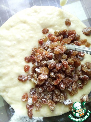 В другую часть добавила распаренный изюм, который также обваляла в крахмале.