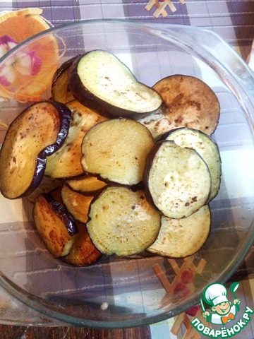 На него выложить часть обжаренных баклажан и кабачков. -