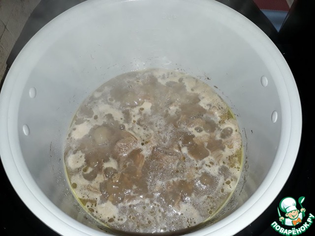 Затем наливаем воду и доводим до кипения, снимаем пену.