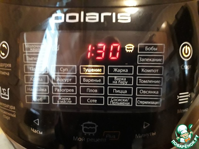 После того, как закипело, закрываем крышку и переключаем на программу "Тушение" (в этом режиме в зависимости от производителя t=87-95 °С) на 1,5 часа.