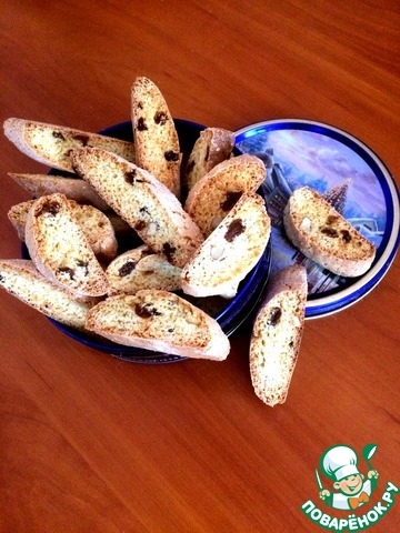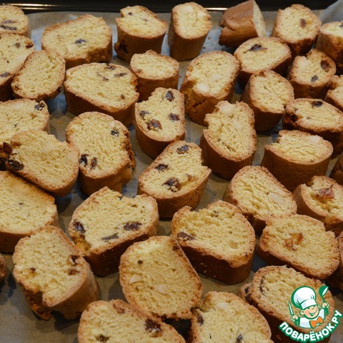 Это печенье-сухарики, которые традиционально изготавливают в Тоскане, а именно, в городе Прато, часто их так и называют - кантуччи ди Прато. В приготовлении нет ничего сложного, есть несколько вариантов, кто-то добавляет немного оливкового масла, кто-то сливочного, мой вариант - без масла. В начинку можно добавить разные орешки, изюм, шоколад. Хранится печенье долго, может лежать около месяца, подают его к сладкому вину "vin santo" - почти ликёр, а не вино даже, их макают в рюмочку, чтобы размочить и так едят. Но и с чаем будет очень вкусно :)
