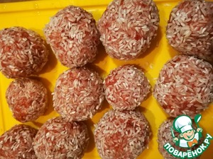 Рис насыпаем на тарелку и готовые тефтели "панируем" рисом
