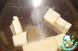 Поместить в кастрюльку воду, масло, нарезанное кусочками, соль и сахар. Довести до кипения и полного растворения масла, сахара и соли.
