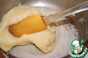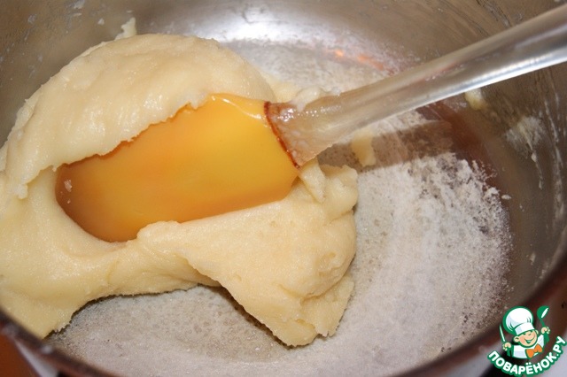 Дайте тесту совсем немного остыть, а затем, осторожно и по одному, введите яйца, тщательно вмешивая их раз за разом.