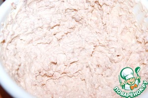 Снять с плиты и, всыпав просеянную муку, тщательно перемешать.