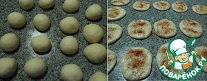 Разделить на порционные кусочки, подкатать в шарики, оставить на смазанном растительным маслом столе на 10 минут, у меня получилось 30 штук (можно сделать более крупные булочки), затем раскатать их и смазать верх растительным маслом, посыпать чесночным порошком и молотой паприкой.