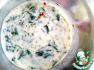 Яйца взбить с солью и специями по вкусу (у меня итальянские травы), добавить молоко и зелень (у меня укроп).