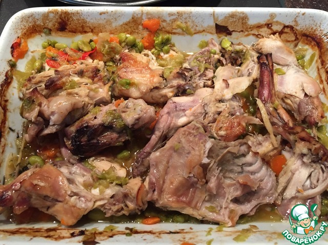 Накройте фольгой и убирайте в разогретую до 200*С духовку. Кролику нужно время, чтобы стать мягким. Готовим полтора часа под фольгой.