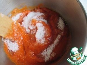 Оба пюре хорошо перемешиваем. Ставим на огонь (или на водяную баню), доводим до кипения и варим 10-15 минут. Периодически помешиваем.