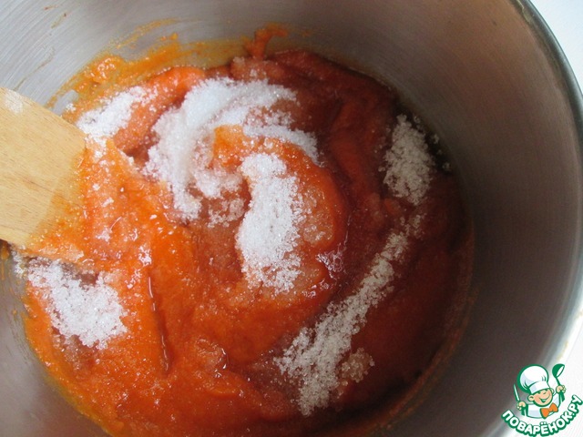 Пюре густое, варим его (на огне или поместив на водяную баню), помешивая, 10-15 минут.