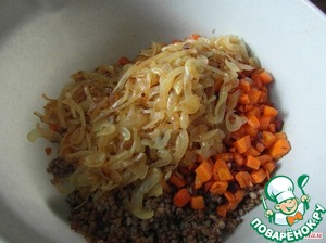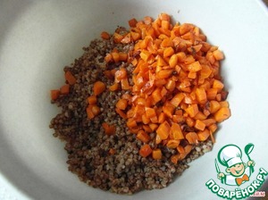Отварила гречку, добавила жареной моркови (обязательно жарить со специями - соль, перец).
