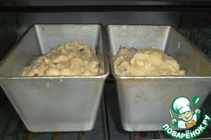 Распределяем тесто по смазанным растительным маслом формам и даем минуть десять постоять. Это не расстойка. Просто тесту необходимо немного «успокоиться» после взбивания и перекладывания в формы. Вес теста – 1360 г, соответственно получается по 680г в каждую форму…