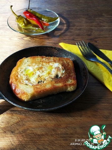 Рецепт: Яичница в хлебе Хрустящая корочка