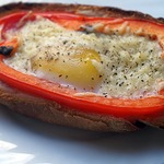 В советские времена яичница была частым гостем на нашем столе. Но в наше время домочадцев этим не удивишь. Приходится включать фантазию. Видела что-то похожее в программе "Смак". Вот такое блюдо у меня получилось.