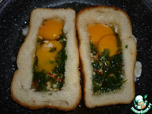 Людочка, обязательно приготовь! Вроде и обычная яичница, но в хлебушке и с зеленью, новый вкус появляется! Очень рекомендую