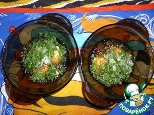 • Добавляем зелень, у меня замороженная смесь зелёного лука и петрушки с собственного огорода.