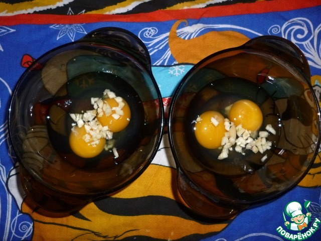 • Разбиваем 2 яйца в отдельную посуду на каждую порцию.