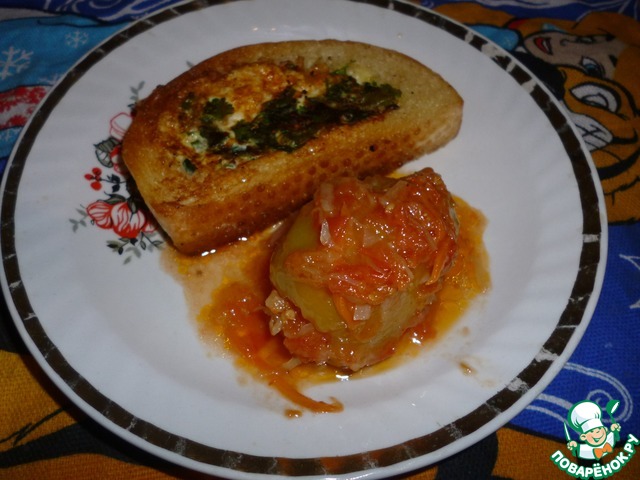 • Вариант подачи холодным зимним вечером с закуской из фаршированного перца овощами, сделанного тоже своими руками.