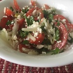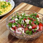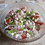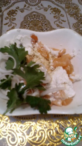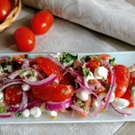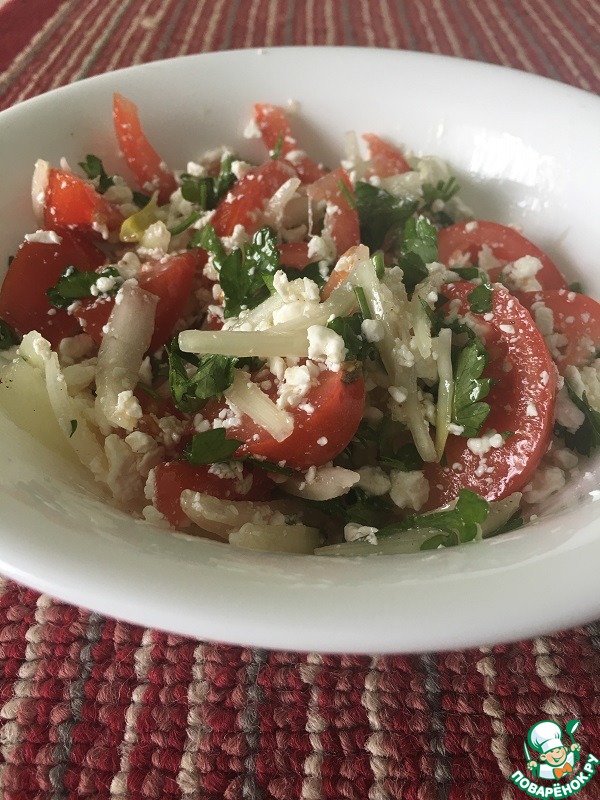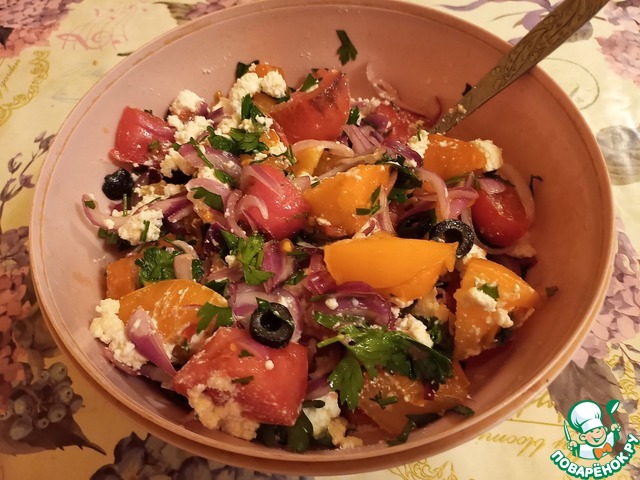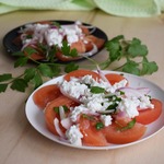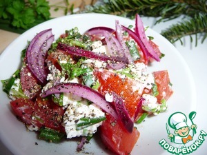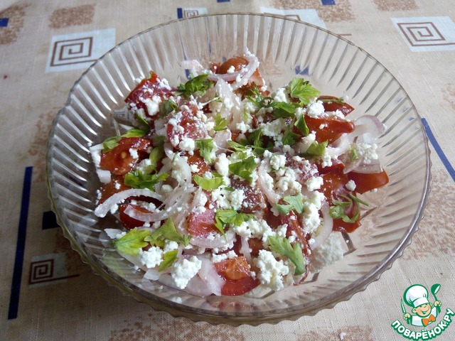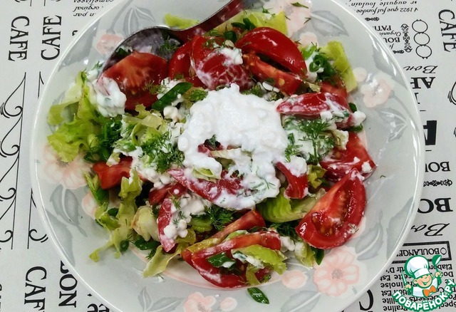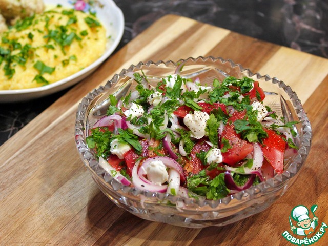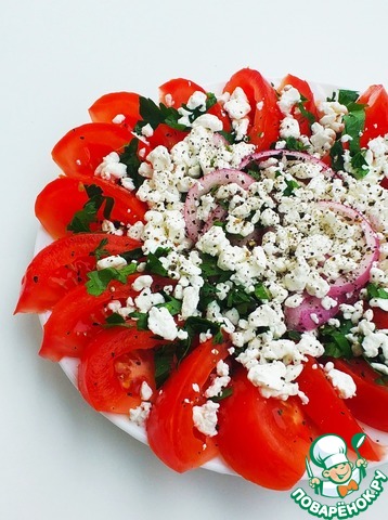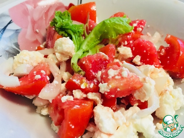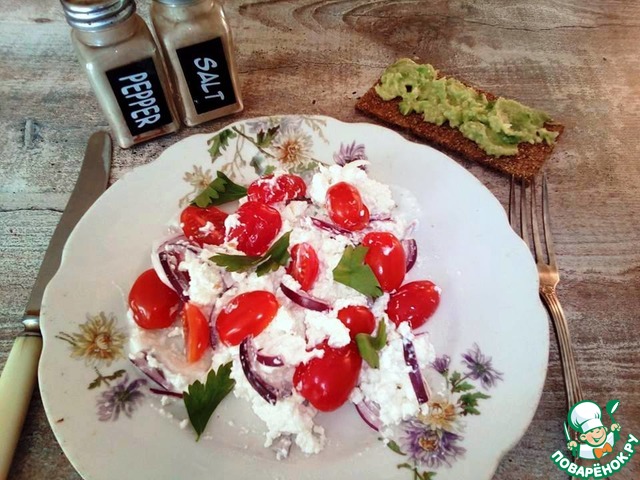 Помидорный салат с крупнозерненным творогом