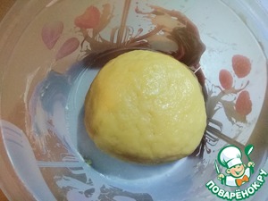 Все смешиваем, добавляем щепотку соли. Я начала миксером, домешивала руками. Тесто у меня не хотело становиться таким шаром, было крошкой. Я добавила остаток яйца от смазывания других пирожков, было совсем немного, и тесто тут же перестало капризничать.