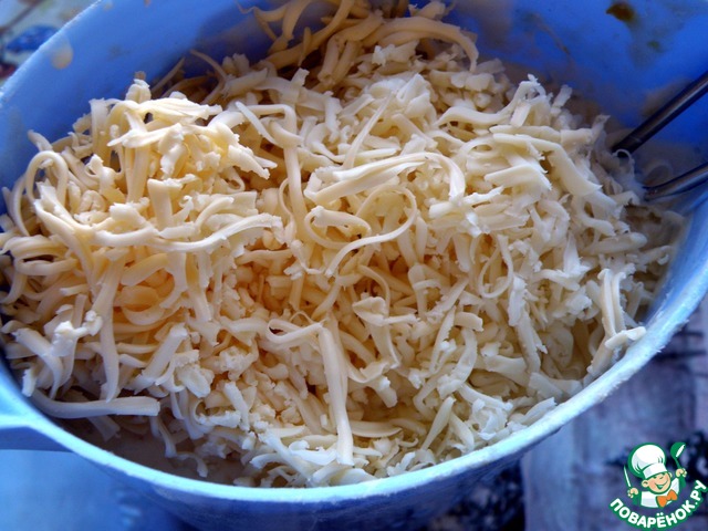 Всыпать тертый сыр, добавить паприку, влить масло и перемешать.