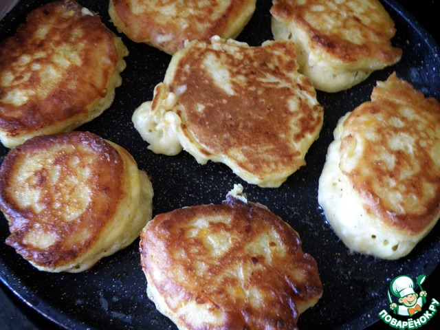 Сильно не зарумянивать, оладьи должны быть золотистые.