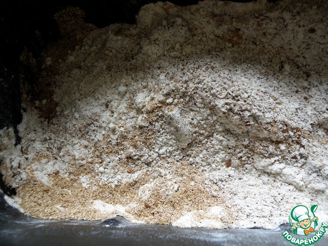 Тесто я замешиваю в хлебопечке. Муку обязательно просеиваю дважды. Жидкость комнатной температуры. Меди и соль растворяю в жидкости, добавляю масло. Всыпаю муку, отруби, кладу солод и семена льна. Поверх всего всыпаю дрожжи.