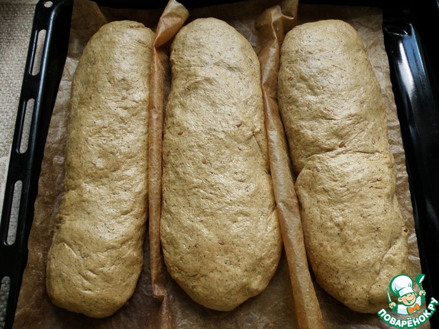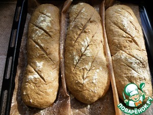 Ставлю батоны в теплую духовку, чтобы еще немного подошли. На дно духовки лью стакан теплой воды. Температуры выпечки - 200 градусов. После подъема и зарумянивания убавить нагрев до 180 и печь до готовности. Готовые батоны завернуть в полотенце и остудить.
