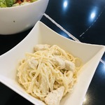 Простой, но изысканный соус был изобретeн Alfredo Di Lelio - владельцем ресторана Alfredo alla Scrofa в Риме - для своей больной жены. Соус его дражайшей половине так понравился, что он включил, согласно легенде, его в меню ресторана. Я представляю вольное прочтение этого классического соуса. Нежный, сливочный, с двумя видами сыра и курицей соус к пасте придётся по душе всем членам семьи от мала до велика.