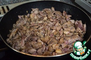 В другой сковороде разогреть остатки масла, поджарить куриное филе на сильном огне, помешивая, минуты 4. Посолить, смешать с грибами и луком.