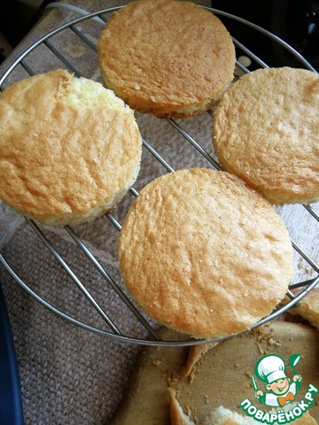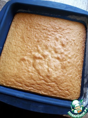 Вылить в форму и испечь в разогретой до 180 градусов духовке до розового цвета. Готовый бисквит охладить на решетке и дать вызреть ночь под крышкой или в пакете.
