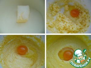 Размягченное сливочное масло взбить в пышную массу с сахаром и ванильным сахаром, примерно 3-4 мин.