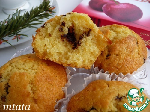 Заполнить формочки тестом на 2/3, добавить шоколад и сверху снова тесто. -
