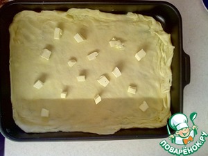 Сковороду или любую форму смазать маслом, выложить большую лепёшку. На неё положить сливочное масло (где-то 2ст. л.)