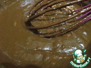 В получившейся полуфабрикат теста добавить сок апельсина, цедру и тёртый шоколад (всё это заранее приготовлено было)