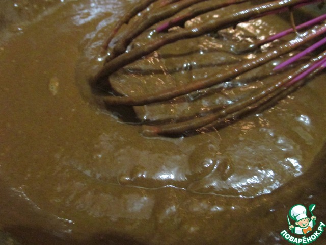 Жидкое (горячий сироп) + сухое = хорошо перемешать венчиком.
