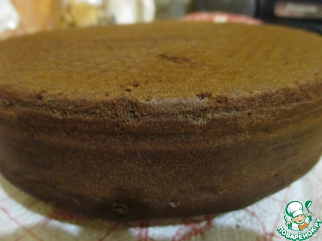 Готовому коржу дать постоять в форме минут 15. Затем вынуть его, выложить на решётку и остудить до полного остывания, прикрыв полотенцем..