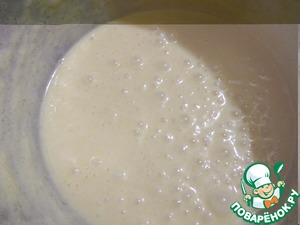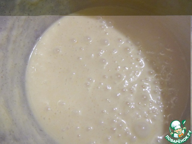 6)сначала могут пойти комки, но надо продолжать перемешивать и тогда, если всё правильно сделаем, то масса начнёт превращаться в гладкую. Всё это перемешиваем 60 секунд.