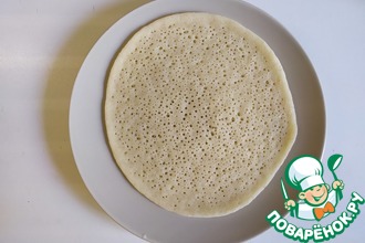 ( лить на центр один половник... т. к. тесто поднимается пеной это не много... не растекать как наши блины... просто налить на центр... не дергать сковороду... как само растекается и все...)