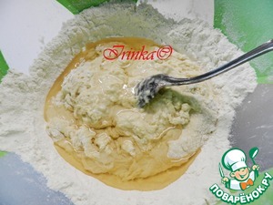 • Смотрим по консистенции. Если тесто липнет в рукам-высыпаем остальную муку.