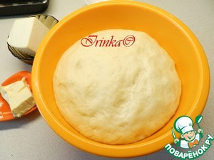 • Сливочное масло размягчаем. Смазываем стол маслом, кладем на него тесто и раскатываем до толщины 1,5 см.