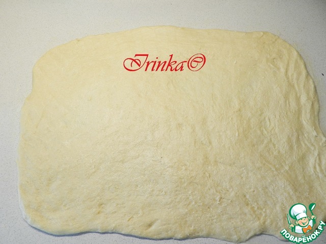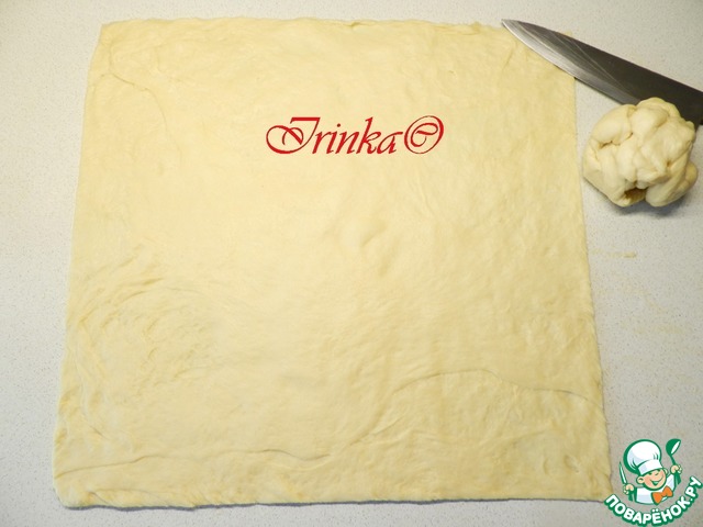 Аккуратно раскатываем в большой прямоугольник толщиной 1,5 см, обрезаем неровные края.