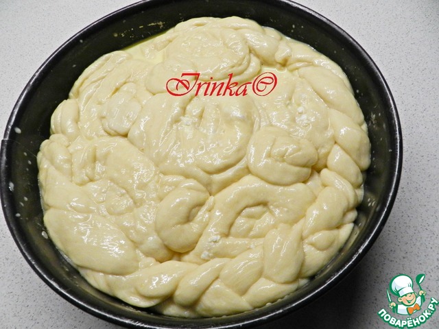 Даем немного подойти и смазываем яйцом, взбитым с молоком.