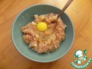 Делаем фарш или берём готовый. Лук очень мелко нарезала, посолила и поперчила. Всё перемешала, добавила яйцо, соединила тщательно все ингредиенты и отправила в холодильник на 1 час.