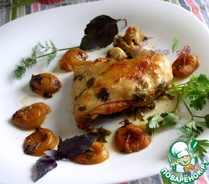 Ароматная, сочная, румяная курочка, запеченная с пряными овощами и абрикосами готова!