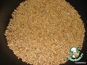 Пока варится бульон, мы ставим на огонь сковороду, нагреваем ее, высыпаем на нее пшеницу, и помешивая, чтобы не пригорела, поджариваем ее минут 5-7.