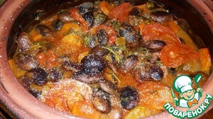 В заключение добавляем нарезанный помидор и петрушку. Разогреваем духовку до 250. Горшок накрываем крышкой и отправляем в духовку приблизительно на час.