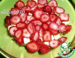 Выложить клубнику, сбрызнуть оливковым маслом.