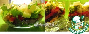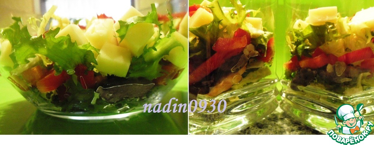 В салатники выкладываем послойно: