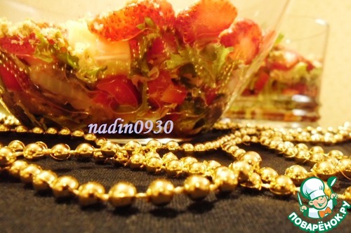 Я потому позволила себе так назвать этот салат, что хочу подарить его всем Поварятам. За первый месяц нового года на сайте так много участников, которых хочется поздравить: с победой в конкурсах, с присвоением новых медалей, с новыми статусами! Вот этот салатик я и приготовила для всех! Он такой же разный, как мы все. Кто-то нежный, как клубника. Кто-то острый и жгучий, как перчик-чили. Кто-то "добротный" и основательный, как грибочки. А кто-то хрупкий и нежный, как зелень салата. У каждого из нас своя жизнь, свои вкусы и интересы, но вот собрались мы тут на Поваренке и нам вместе вкусно! Надеюсь, что модераторы не будут против такого названия...